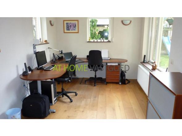 Begane grond: overdekte entree, hal met toilet en trapopgang, royale L-vormige woonkamer met gashaard met schouw, openslaande deuren naar de ruime tuin gelegen op het zuiden. Nette open keuken welke van alle gemakken is voorzien zoals; gasfornuis, afzuigkap, oven, koelkast, vriezer en vaatwasser. Studeer- / werkruimte (ca. 6,13x3,20m) grenzend aan de woonkamer, die d.m.v. glazen schuifdeuren van de woonkamer afgesloten kan worden. Ruime berging / bijkeuken (ca. 3,80 x 3,20m) met extra koelkast, grote diepvries , wasmachine en droger. De bijkeuken geeft toegang tot de tuin gelegen aan de zijkant van de woning. Afgezien van de hal en de bijkeuken (hier liggen plavuizen) is de gehele begane grond voorzien van een massief eiken houten vloer.