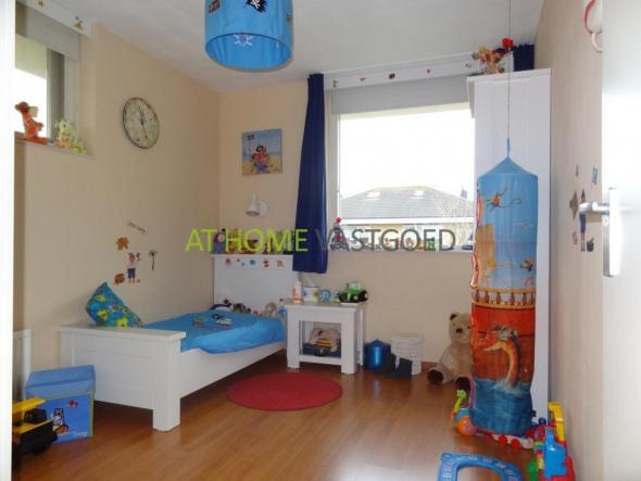 1e verdieping: ruime overloop met vaste trapopgang naar de 2e verdieping en c.v.-ruimte met tevens de opstelling van de zonneboiler t.b.v. de zonnecollectoren op het dak. Ruime ouderslaapkamer (ca. 4,82 x 4,01m) met grote kastenwand, slaapkamer 2 (ca. 4,01 x 3,45m) en 3e slaapkamer van ca. 3,67 x 2,74m. De luxe en ruime badkamer is voorzien van ligbad, aparte douche, 2 wastafels en 2e toilet. De gehele eerste verdieping is voorzien van een nette laminaat vloer.
