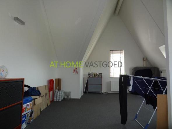 Trap naar de 2e etage. Hier bevindt zich de zeer ruime zolder met hoge plafonds en wasmachine + droger. Perfect te gebruiken als kantoor of logeerkamer. Er bevindt zich ook veel extra bergruimte.