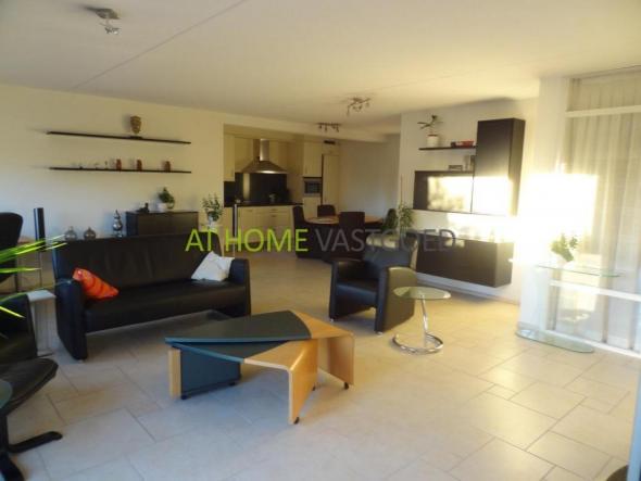 Ruime woonkamer met open keuken en een eethoek. De moderne keuken is volledig uitgerust met o.a een combimagnetron, vaatwasser, elektronische kookplaat, koelkast en vriezer. In de bijkeuken bevindt zich de wasmachine. Twee slaapkamers en een badkamer met een inloop douche en een ligbad. Er is een ruim terras welke bereikbaar is via de woonkamer en via een van de slaapkamers.