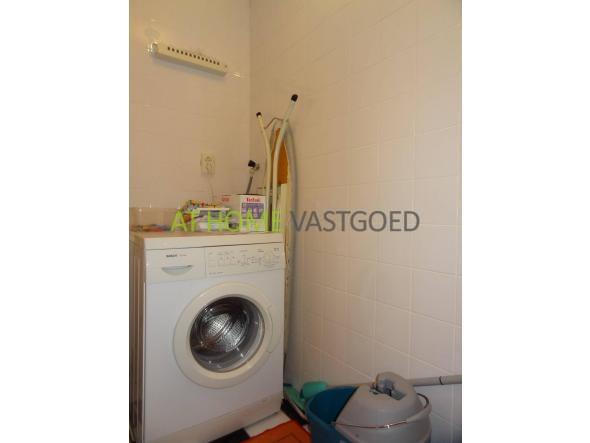 In de tussenhal bevinden zich het toilet met fonteintje en een ruime bergkast met aansluiting voor de wasmachine.