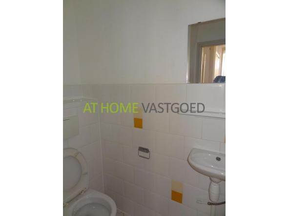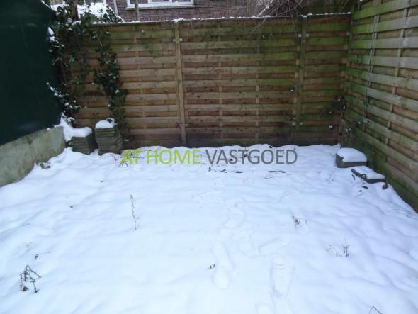 Hallway / entrance with storage, stairs. Toilet with sink and space for the washingmachine and dryer. Access to the spacious living room with laminate floor, plastered walls and ceilings, a simple kitchen located on the frontside. From the living room you have access to the fully tiled urban garden on the North East.