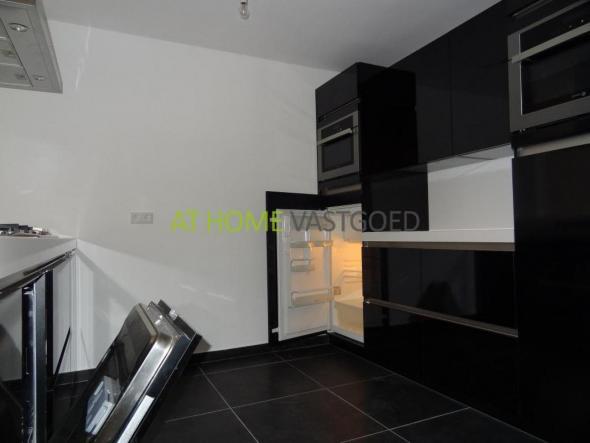 Split level, basement, three steps to the hall. This apartment has laminated floors. Spacious living room and an open kitchen. The kitchen is equipped with a black high gloss kitchen with appliances namely refrigerator, dishwasher, oven and hob. There is a large bedroom at the front.