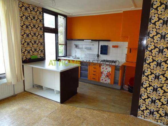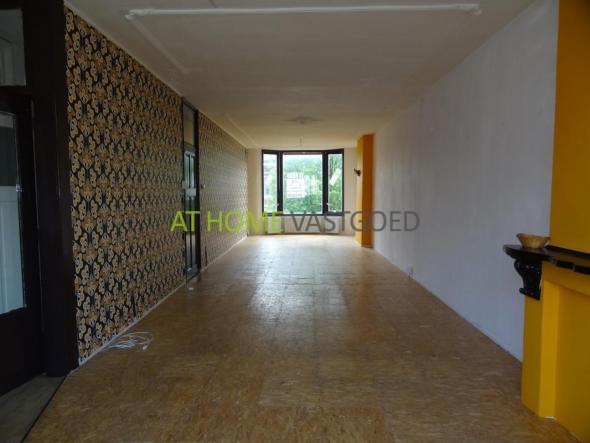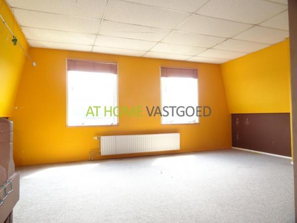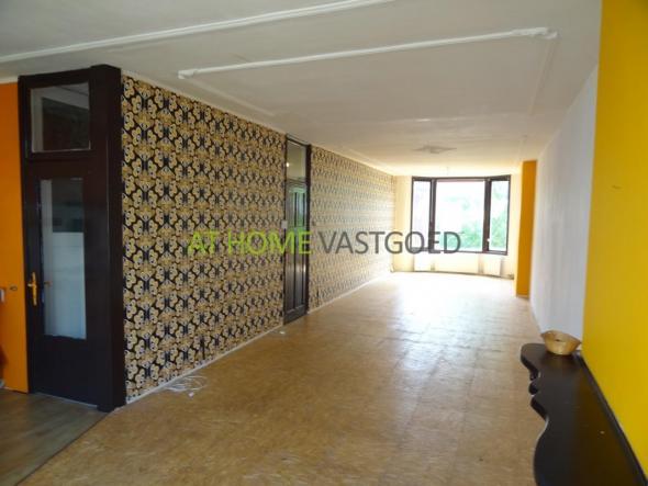 2e etage: entree appartement, zeer ruime en lichte woonkamer met houtenvloer, open keuken welke is voorzien van gaskookplaat, voldoende kastruimte en geeft toegang tot het balkon aan de achterzijde van de woning. Apart toilet. Slaapkamer.