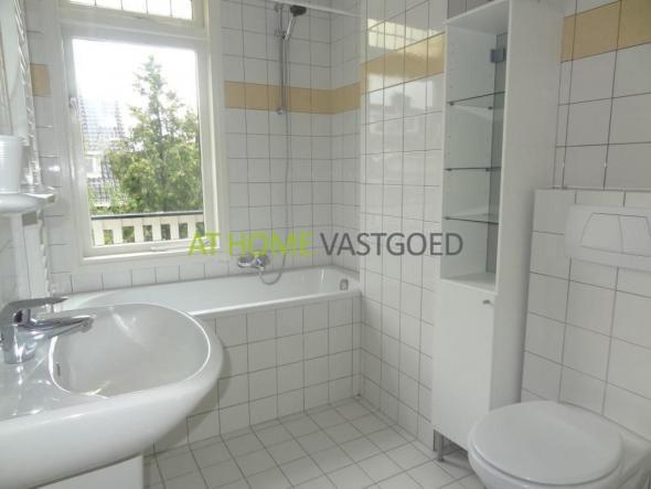 eigen voordeur, trap naar de 1e etage. Hal voorzien van wc. Ruime en lichte woonkamer in L-vorm voorzien van authentieke ornamenten, gekleurd glas en erker. Aan de achterzijde bevindt zich de keuken met afwasmachine. Vanuit de keuken en woonkamer heeft u toegang tot het balkon op het oosten. Trap naar de 2e etage. Hier bevinden zich de 2 ruime slaapkamers voorzien van bergkast en eigen wastafel. De slaapkamer aan de achterzijde geeft toegang tot het ruime balkon.De badkamer is voorzien van 2e wc, wastafel en ligbad/douche.