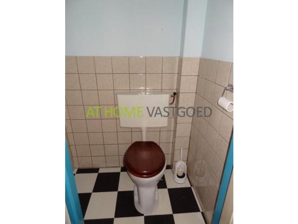 Eerste verdieping: 3 kamers, een voorkamer van ca. 4x 4 m en een tussenkamer van ca. 4 x 4 m met ramen aan de bovenzijde. Ruime kamer van ca. 5 x 4 m aan de achterzijde. Badkamer met douche, wastafel en ligbad. Het tweede toilet is gesitueerd op de overloop.