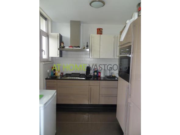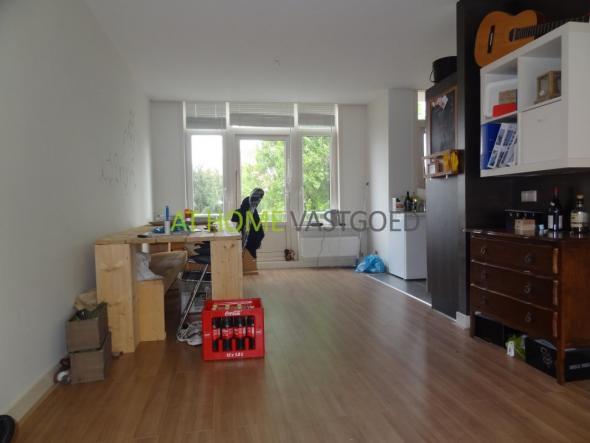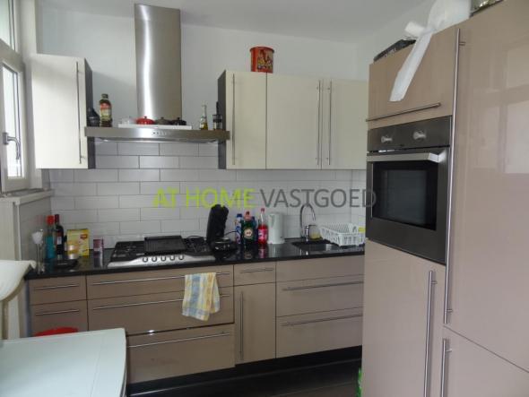 2e etage: hal, eerste toilet, entree appartement. Zeer ruime en lichte woonkamer met open keuken, erker en geeft toegang tot het eerste balkon gelegen op het zuidoosten. De strakke en moderne keuken is voorzien van gaskookplaat, afzuigkap, koelkast, oven en geeft ook toegang tot het balkon gelegen aan de achterzijde.