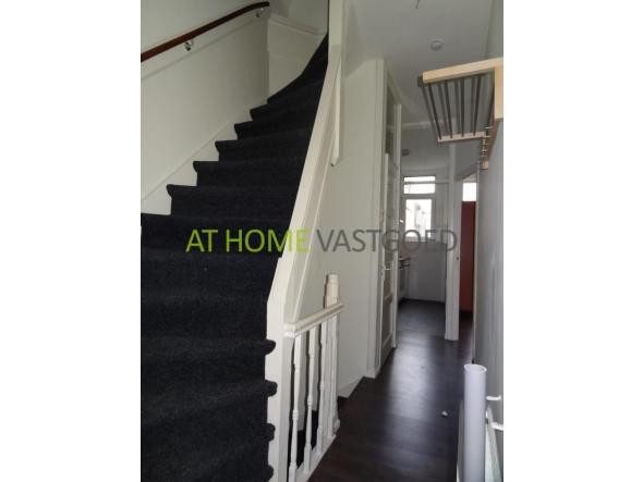Interne trap naar de 2e etage waar zich de 2 ruime slaapkamers bevinden. Mooie badkamer voorzien van dubbele wastafel en inloopdouche.