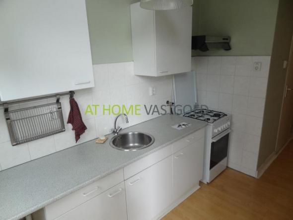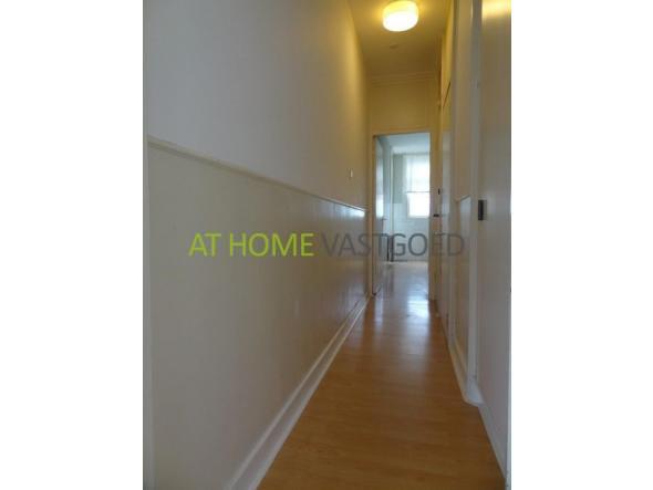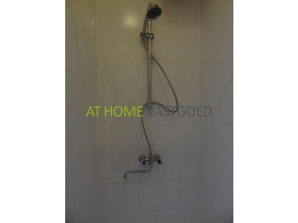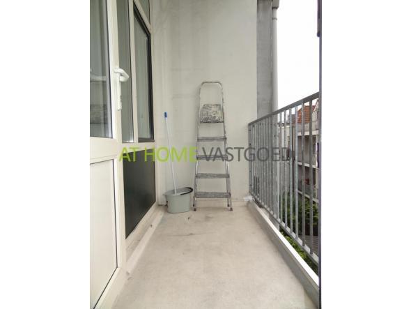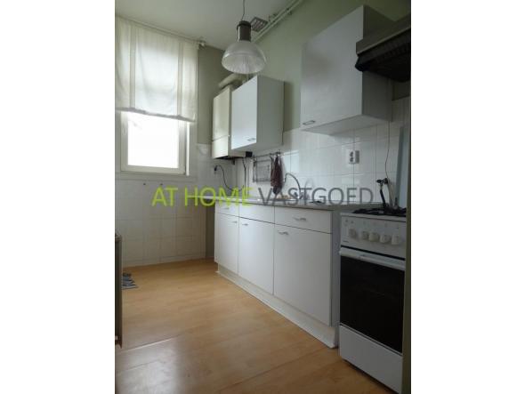 2e etage; entree, overloop; lichte en ruime L-vormige woonkamer , keuken met gasfornuis, oven, afzuigkap en biedt toegang geeft tot het balkon aan de achterzijde. Badkamer met douche en wastafel. Vaste trap naar de derde etage.