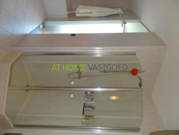 De badkamer is voorzien van groot ligbad, wandcloset, dubbele wastafel en separate douche. De badkamer is te bereiken via de hal en de slaapkamer.