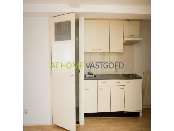 De lichte ruime van woonkamer, van ca. 33m2, is voorzien van een open keuken. De keuken is uitgerust met een elektische kookplaat, recirculatie afzuigkap en koelkast.