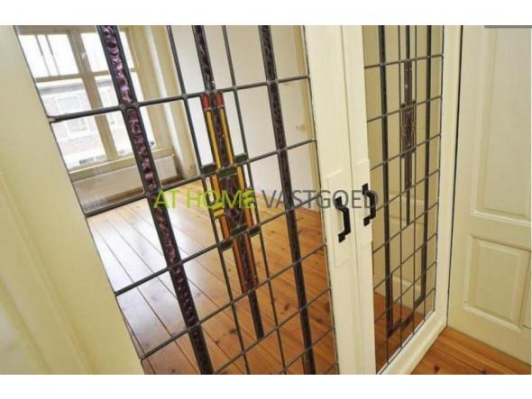 Sfeervolle woon-/eetkamer en kamer met eiken houten vloer en twee marmeren schouwen.Kamer met vaste kasten en schuifdeuren met glas in lood naar suite aan de achterzijde.Openslaande deuren naar zonnig balkon Zuidoosten.In de achterbouw de woonkeuken voorzien van hardstenen werkblad,geiser,rvs spoelbak en afzuigkap.Riante slaapkamer aan de achterzijde met eigen balkon die ook aan het Zuidoosten is gelegen.