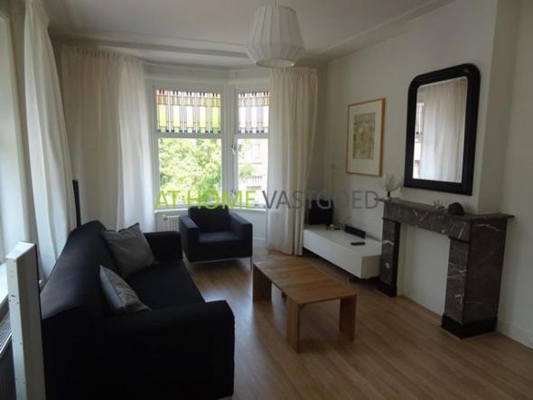 Gezamenlijke trapopgang. naar de 1e etage. Binnenkomst in hal met toegang naar alle vertrekken. Een ruime en lichte woonkamer welke ook via en-suite deuren toegang bied naar de slaapkamer welke weer voorzien is van diverse inbouwkasten. De keuken is gelegen aan de achterzijde en is voorzien van een kookplaat, oven, koelkast, wasmachine en droger. De toilet is gescheiden van de badkamer. De badkamer is voorzien van een wastafelmeubel en een ligbad. Dit appartement word verhuurd voor een all-in prijs van € 1050,00 per maand.