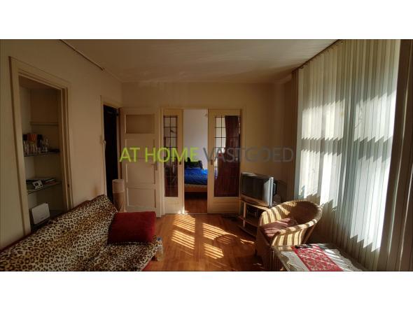 Entree op de 1e etage. Hal met toegang naar alle vertrekken. De woonkamer aan de voorzijde heeft een afmeting van 5.1 m x 3.4m. De grote slaapkamer ligt aan de voorzijde en is zowel via de hal en via de woonkamer te bereiken doormiddel van en suite deuren en heeft een afmeting 2.70 m x 3,30 m. Slaapkamer 2 is gelegen aan de achterkant en heeft een afmeting van 2.20 m x 2.05 m. De badkamer is voorzien van een douche en toilet. De keuken is aan de achterzijde gelegen is voorzien van een 4 pits gaskookplaat, wasmachine en een koel/vriescombinatie en geeft toegang tot het balkon.