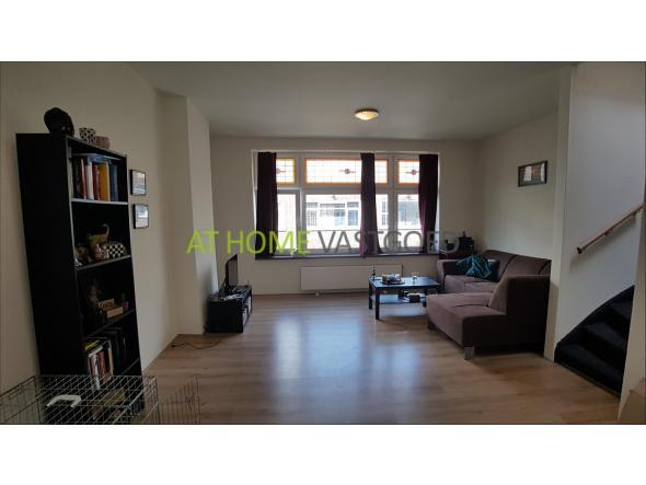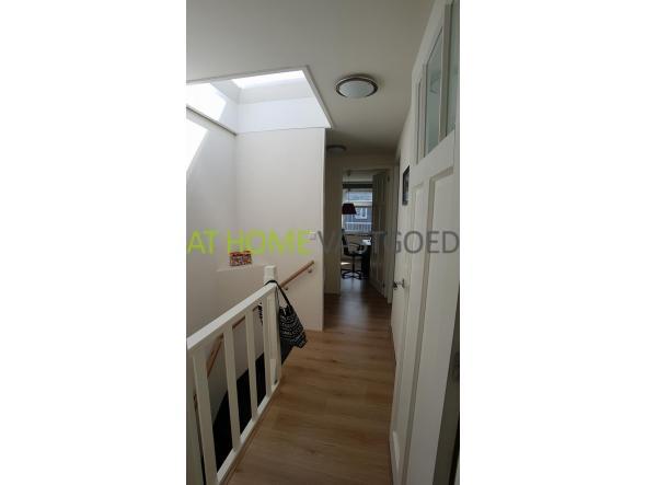 2e verdieping: entree, hal, separaat toilet met fonteintje. Ruime lichte woonkamer met open keuken. De keuken is voorzien van een gaskookplaat en afzuigkap. Via de keuken heeft u tevens toegang tot het eerste balkon.