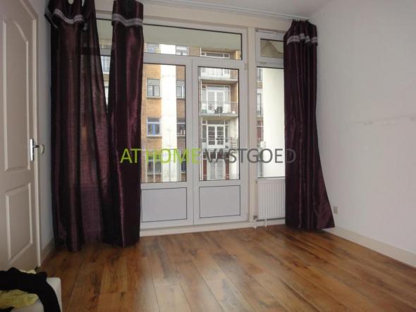 2e etage: entree, hal met apart toilet en bergkast. Ruime en lichte woonkamer met open keuken. De nette keuken is voorzien koelkast/vriezer, gaskookplaat, afzuigkap, oven en magnetron. Via de woonkamer heeft u toegang tot de slaapkamer gelegen aan de achterzijde. De slaapkamer geeft toegang tot de mooie badkamer en het balkon. De fris betegelde badkamer is voorzien van een douchecabine, wastafel, designradiator en wasmachine.