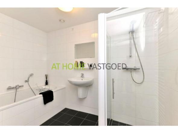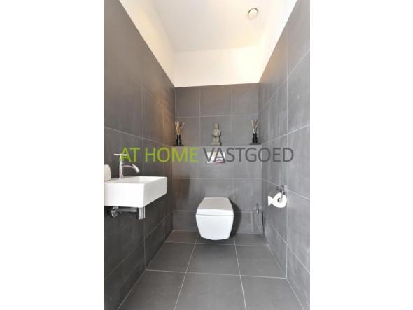Volledig betegelde luxe badkamer v.v. inloopdouche, ruim ligbad, wastafel en designradiator. Praktische inpandige berging v.v. aansluiting wasmachine en mechanisch ventilatiesysteem