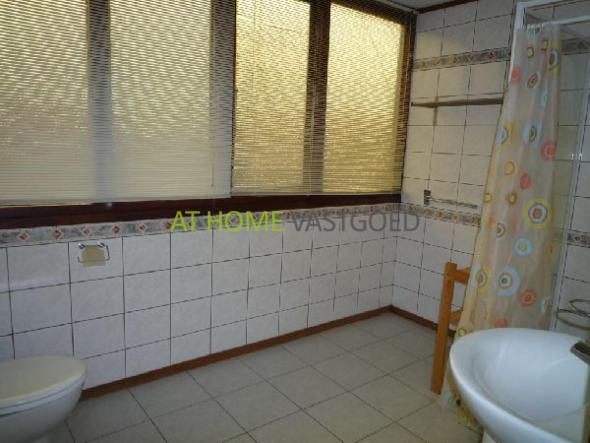 De ruime, licht betegelde badkamer ( 2.1m x 3.2m) is voorzien van een douchecabine, toilet en wastafel.