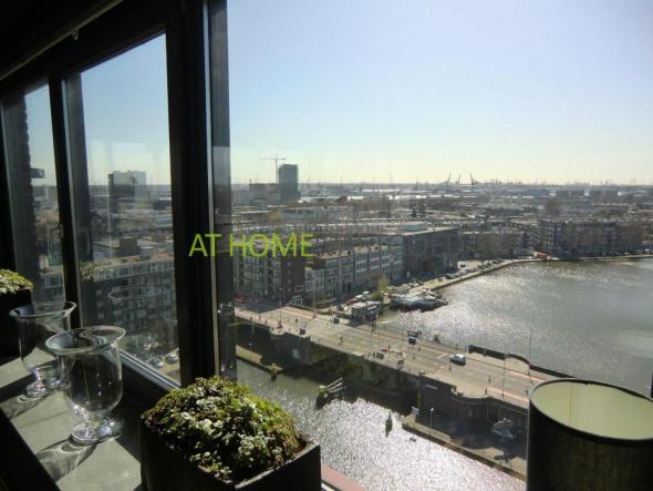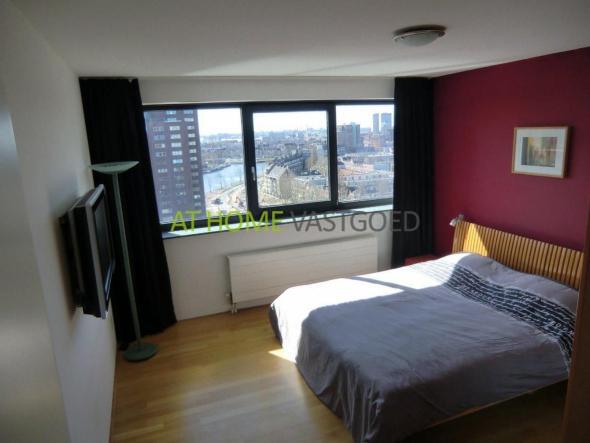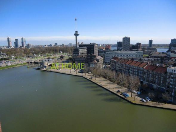 Te huur:Schitterend en royaal hoekappartement op de 13e verdieping met fenomenaal weids uitzicht over de skyline van Rotterdam.