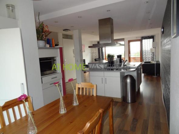 Indeling: Entree, hal met garderobenis, toilet. Ruime woon-/eetkamer met open keuken. De keuken is voorzien van een inductie kookplaat met afzuigkap, vaatwasmachine, koelkast , vriezer en oven/magnetron (Siemens apparatuur).