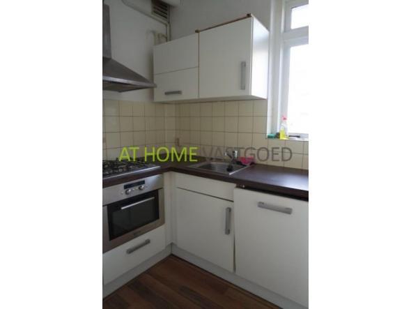 1e verdieping: entree appartement, hal met intercom, nette keuken voorzien van gaskookplaat, afzuigkap, combi oven, koelkast en vaatwasser. Woonkamer met grote ramen, wat veel lichtinval creëert, 2 slaapkamers. Licht betegelde badkamer met douche en wastafel. Separaat toilet.