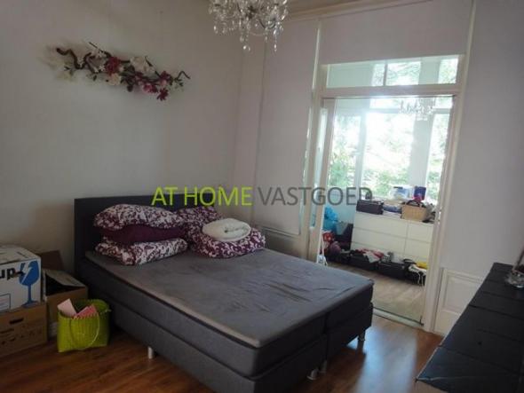 Gezamelijke trap naar de 1e etage. Binnenkomst in de hal met toegang naar alle vertrekken. De woonkamer heeft een afmeting van 3,8 x 8,15m. De slaapkamer aan de achterzijde is 3,8 x 4,07 en geeft toegang naar een achterkamer van 3,8 x 2,02m. Aan de voorzijde is nog een studeerkamer/zijkamer van 2,6 x 2m. De keuken aan de achterzijde geeft toegang naar de badkamer met douche. Het appartement is gedeeltelijk voorzien van dubbele beglazing en word verwarmd d.m.v. centrale verwarming. De woning is voorzien van een nette laminaatvloer.