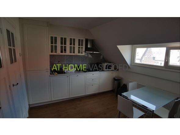 Entree, woonkamer met een nette open keuken voorzien van diverse inbouwapparatuur: koelkast, gas kookplaat, afzuigkap en wasmachine. De ruime slaapkamer gelegen aan de achterzijde van de woning is ingericht met een tweepersoonsbed en een linnenkast. Ruime badkamer voorzien van luxe douche/stoom cabine, badkamermeubel, wastafel en toilet.