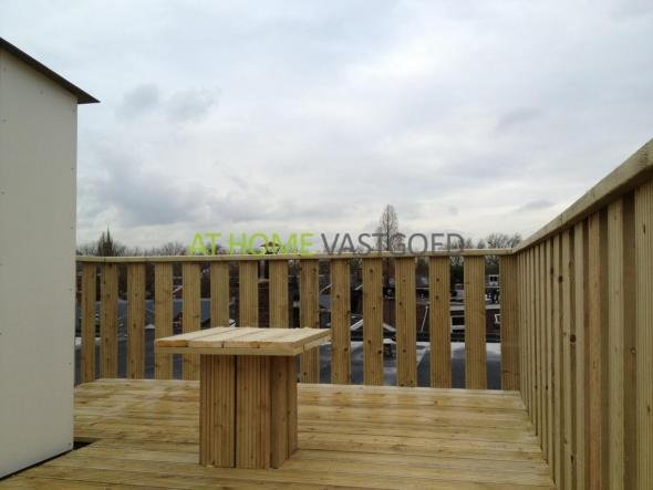 Grote badkamer, met afgesloten ruimte met wasmachine en droogtrommel, verder voorzien van inloopdouche en wastafelmeubel. Trap naar het grote dakterras met schitterend uitzicht over Rotterdam!