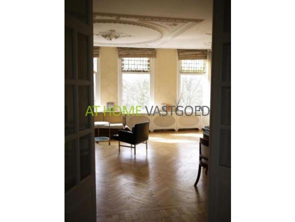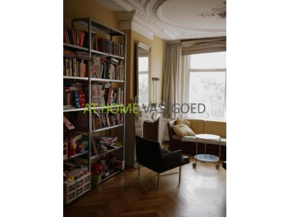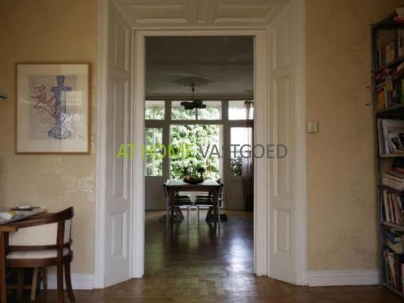 Gang met grote bergkast en toiletruimte met toilet en wasbakje. Statige, 3-raampartijen-brede voorkamer (ca. 38 m²) met wijds zicht over de Heemraadssingel en plein, prachtige parketvloer, marmeren schouw met gasgestookte open haard met afstandsbediening (!), is door dubbele ensuite deuren gescheiden van de achterkamer (ca. 22m²) met dezelfde parketvloer, marmeren schouw en openslaande deuren naar de veranda.