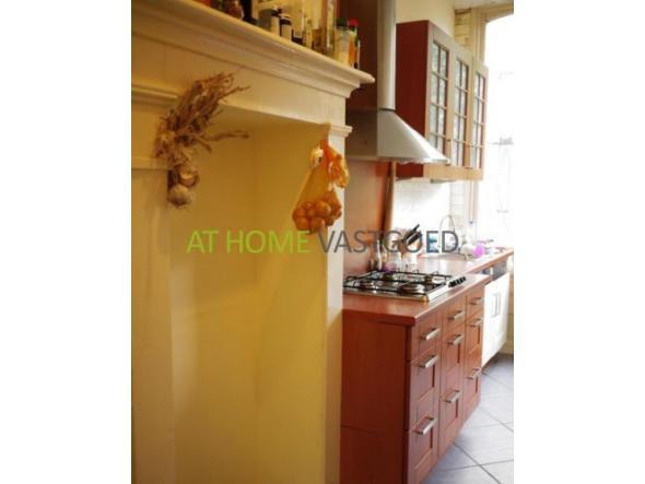 Keuken met moderne opstelling voorzien van 4-pits gaskookplaat, ventilatieschouw, oven en vaatwasser. Deur naar veranda.
