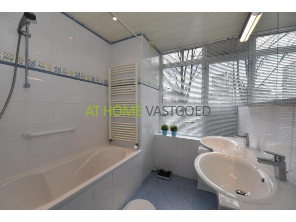 De fraaie badkamer is voorzien van een ligbad met douchefunctie, dubbele wastafel met meubel, spiegel en handdoekenradiator.