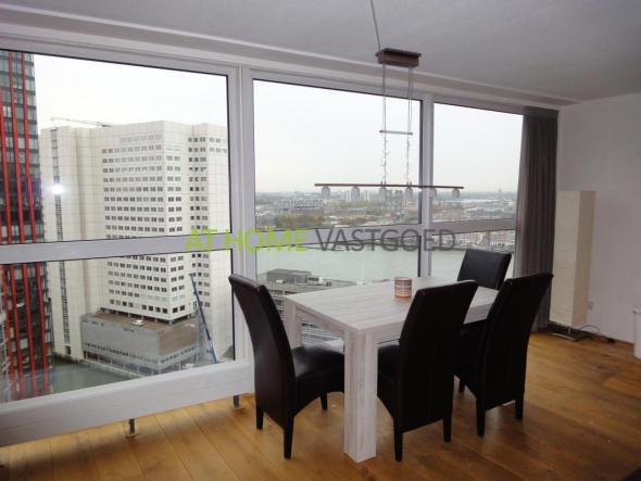 Te huurLuxueus 4-kamer appartement gelegen op de 23ste verdieping van één van de fraaie "Waterstadtorens". Dit appartement heeft een werkelijk adembenemend uitzicht over de skyline van Rotterdam en de Maas.