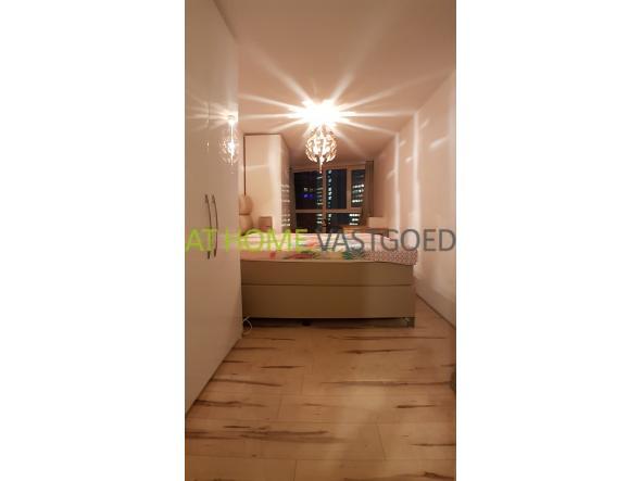 13e verdieping: entree hal met toegang tot alle vertrekken, separaat modern zwevend toilet met fonteintje en grote inpandige berging met wasmachine. Riante masterbedroom met 2 persoonsbed, garderobekasten en bureau. Slaapkamer 2 is ook van een prima formaat en is voorzien van een 1 persoonsbed, kledingkast, bureau en biedt toegang tot de loggia. Luxe moderne badkamer met heerlijke inloopdouche, grote wastafel met meubel en designradiator. Zeer ruime woonkamer met geweldig uitzicht, veel lichtinval en nette open keuken. De keuken is voorzien van de benodigde apparatuur zoals; keramische kookplaat, afzuigkap, combi-magnetron, vaatwasser, koelkast en vriezer.