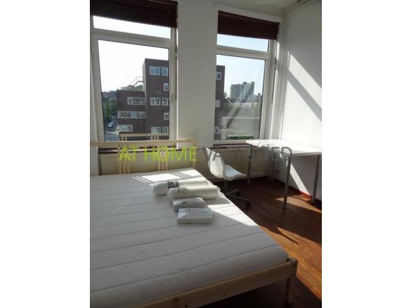 Entree portiek met deurbellen, intercom en brievenbus. Trap naar de 3e en bovenste etage. Hal met toegang naar de woonkamer, badkamer met wastafel en toilet en de 1e slaapkamer. Deze ruime slaapkamer is voorzien van een tweepersoonsbed, een kledingkast en een bureau. De woonkamer heeft een afmeting van ca. 20m2. en bied toegang naar de keuken. Deze is voorzien van een koelkast, gaskookplaat, afzuigkap en een wasmachine. Er is toegang tot een klein balkon. De 2e slaapkamer is aan de achterzijde gelegen en ook deze is voorzien van een tweepersoonsbed, Een bureau en een kledingkast. Via de woonkamer is er toegang naar de 3e slaapkamer via een wenteltrap. Ook deze slaapkamer is voorzien van een bureau, kledingkast en een tweepersoonsbed.