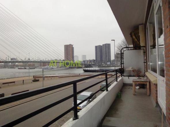 CHARMANT 3-KAMER APPARTEMENT MET SPECTACULAIR UITZICHT EN FANTASTISCH BALKON OVER DE GEHELE BREEDTE, OP HET ZUIDWESTEN GELEGEN AAN DE NIEUWE MAAS EN MET ZICHT OP DE ERASMUSBRUG•Drie-kamer appartement met mooi uitzicht over de maas en een balkon over de hele breedte.