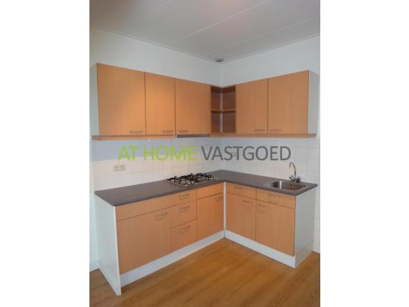 1e etage: entree appartement, lichte L- vormige woonkamer van ca.27m2 met grote raampartijen en open keuken. De nette keuken is voorzien van gaskookplaat, afzuigkap en koelkast met vriesvak. Separaat toilet met fonteintje. Aan de achterzijde is de ruime slaapkamer (ca.16 m2) gelegen welke toegang geeft tot de badkamer het balkon. De nette badkamer is voorzien van een ligbad, wastafel en design radiator. Berging met aansluiting voor wasmachine.