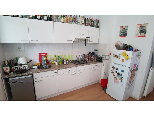 Woonkamer met half open keuken voorzien van een 4 pits gas kookplaat, afzuigkap, vaatwasser, magnetron, koel/vries combinatie en toegang tot het ruime balkon. Vanuit de woonkamer is de eerste slaapkamer te bereiken.