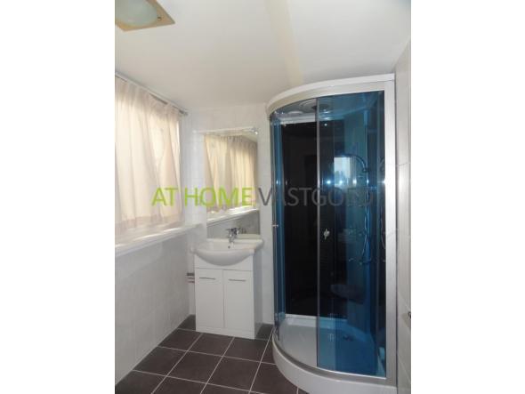 Trap naar de 3e etage. Entree appartement. Badkamer voorzien van douche/ stoomcabine, toilet en wastafel. De ruime woonkamer is voorzien van mooie karakteristieke houten balken en een open keuken met kookplaat, afzuigkap, wasmachine en koelkast.