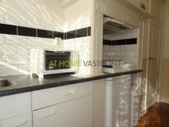 Eerste verdieping: entree, hal met kastruimte en separaat toilet. Ruime en lichte woonkamer, keuken voorzien van gaskookplaat, afzuigkap, koelkast en combi magnetron-oven.