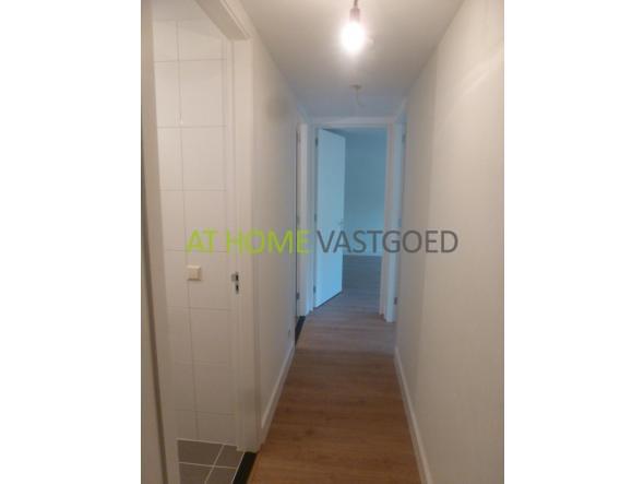 Entree, trap naar beneden naar het soutterain. Entree appartement. Hal welke toegang geeft tot alle vertrekken. Aparte wc. Knusse woonkamer met open keuken. De keuken is voorzien van alle benodigde inbouwapparatuur zoals vaatwasser, ijskast, afzuigkap, kookplaat en combi magnetron. Grote slaapkamer. De nette badkamer is voorzien van bad/douche, wastafel en radiator. Aan de achterzijde heeft u een kleine buiten.