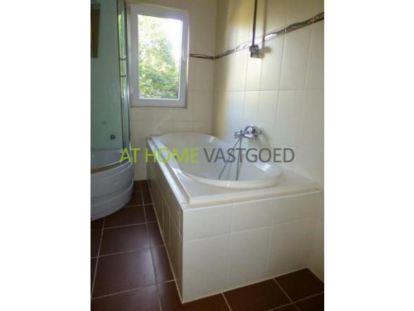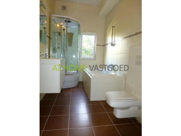 De royale badkamer en-suite aan de slaapkamer is voorzien van een ligbad, aparte douche, een dubbele wastafel en een tweede toilet. De badkamer is dus te bereiken via deze slaapkamer.