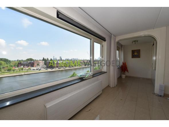 Geweldig uitzicht vanuit de woonkamer over het water en heerlijk veel lichtinval vanaf de 6e verdieping. De open keuken is voorzien van diverse gemakken zoals een oven, kookplaat met afzuigkap, luxe mengkraan en voldoende opbergmogelijkheden. De badkamer is voorzien van een douchecabine en wastafel met spiegel.