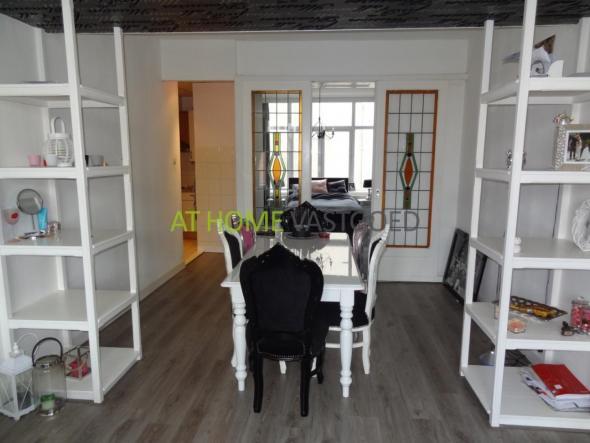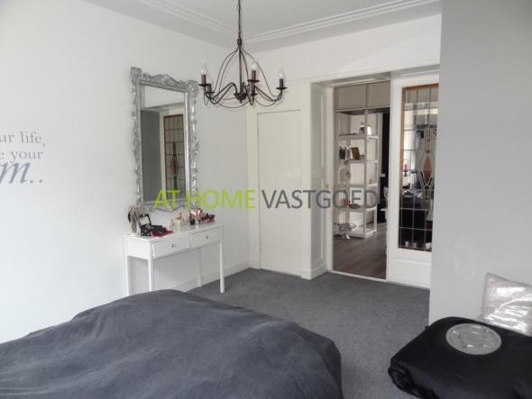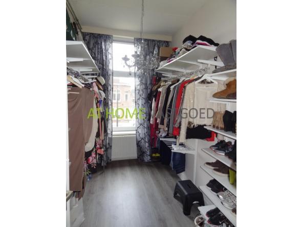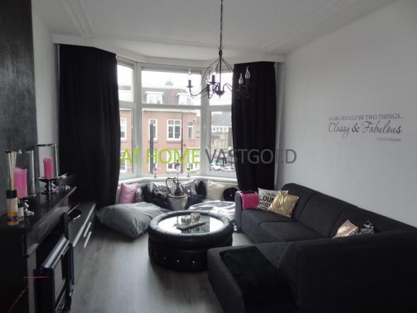2e etage: entree appartement, ruime lichte woonkamer met erker en hoog plafond met ornamenten. Via de eetkamer komt u in de half open keuken welke is voorzien van gaskookplaat, afzuigkap en koelkast. De ruime slaapkamer gelegen aan de achterzijde is middels schuifdeuren met glas in lood details te bereiken. Tevens geeft de slaapkamer toegang tot de nette badkamer met ligbad/douche, wastafel en toilet. Extra kamer welke goed kan worden gebruikt als walk-in closet of studiekamer.