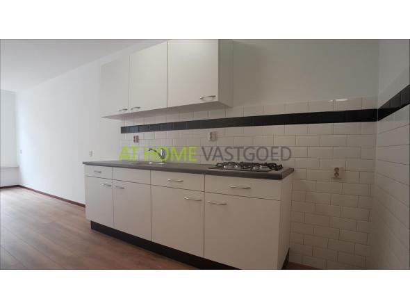 1e verdieping: entree, ruime woonkamer met open keuken, deze is voorzien van een inbouw gaskookplaat. Verder is de woonkamer uitgerust met grote raampartijen waardoor deze veel lichtinval geniet. De moderne badkamer is voorzien van een douchecabine met thermoskraan, wastafel, zwevend toilet en wasmachineaansluiting. De ruime slaapkamer is gelegen aan de achterzijde van de woning en biedt middels openslaande deuren toegang tot het balkon.