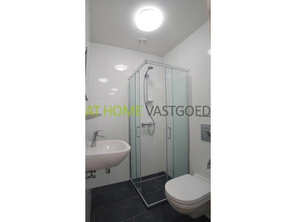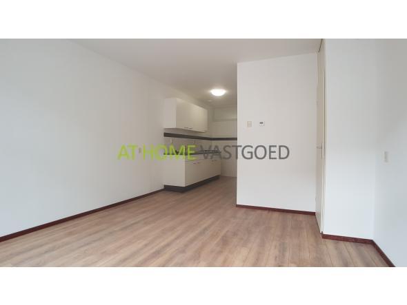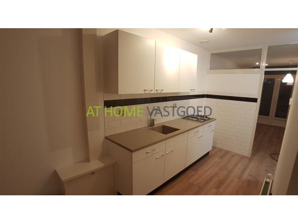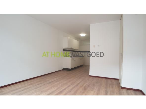 1e verdieping: entree, ruime woonkamer met open keuken, deze is voorzien van een inbouw gaskookplaat. Verder is de woonkamer uitgerust met grote raampartijen waardoor deze veel lichtinval geniet. De moderne badkamer is voorzien van een douchecabine met thermoskraan, wastafel, zwevend toilet en wasmachineaansluiting. De ruime slaapkamer is gelegen aan de achterzijde van de woning en biedt middels openslaande deuren toegang tot het balkon.