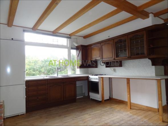 2e verdieping: entree, hal met toilet, riante lichte woonkamer met sfeervolle balkenplafond en open keuken. De keuken is voorzien van koelkast, vriezer, gasfornuis met oven en een afzuigkap. Op deze verdieping treft u ook de wasruimte met aansluiting voor de wasmachine.