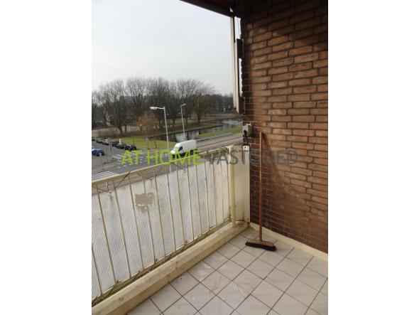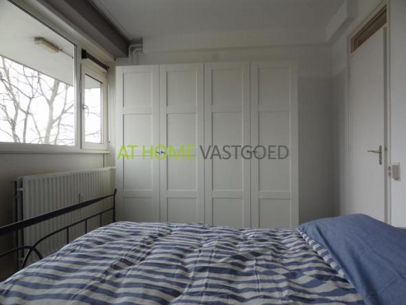 3rd floor, entrance apartment. Spacious and bright living room with lots of built in clostespace and a big balcony at the front. Separate kitchen, recently renovated and equipped with all necessary appliances. Separate toilet. At the rear is the large bed chamber with adjacent bathroom with sink, shower and washing machine. From the bedroom you have access to the large balcony on the side of the building. Giving you a beautiful view of the canal and the park.