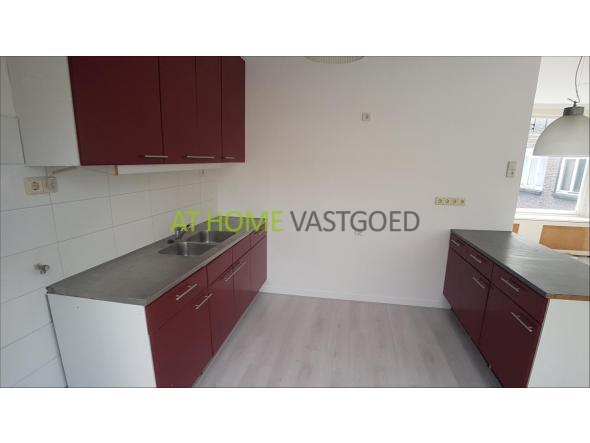 2e verdieping: entree, hal met trapopgang naar de derde verdieping en separaat toilet. Lichte woonkamer voorzien van nieuw laminaat en spotverlichting in het plafond, open keuken met toegang naar het balkon. Op deze verdieping treft u ook de berging met aansluiting voor de wasmachine.