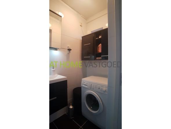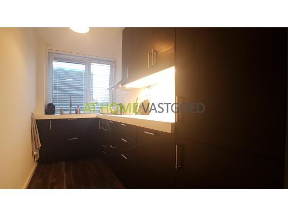1e verdieping: entree, hal met vaste kasten en separaat toilet. Moderne afzonderlijke keuken uitgerust met keramische kookplaat, afzuigkap, combi magnetron- oven, koelkast, vriezer en vaatwasser. De strakke badkamer is voorzien van inloopregendouche, wastafelmeubel en wasmachine. Lichte ruime woonkamer met toegang naar de masterbedroom. De tweede slaapkamer is aan de achterzijde gelegen en heeft toegang tot het balkon.