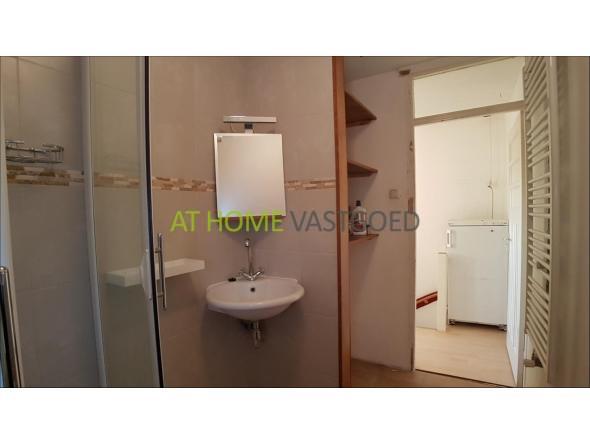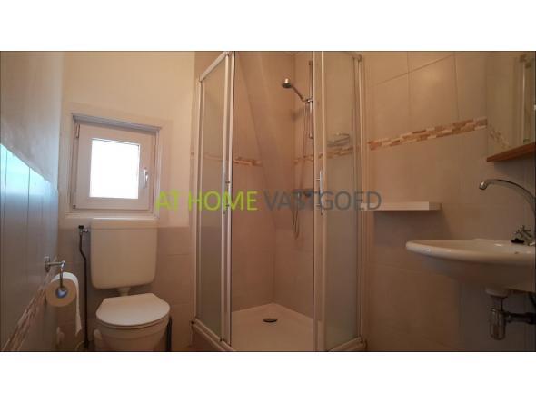 Nette badkamer met douchecabine, 2e toilet, wastafel, radiator en wasmachineaansluiting. Vanuit de badkamer is de ruime bergvliering bereikbaar.